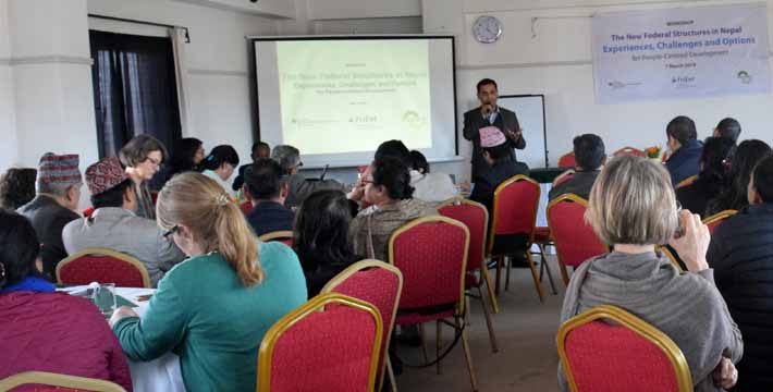 Dr. Prakash Bhattarai presented in his research findings that “undermined critical discourse of advantages, disadvantages and implications of federal system in Nepal has weakened the foundation of the system”. However, federalism is a startup project for Nepal and new ideas, resources, enthusiasm can lead for development, while its future is a challenge due to government’s practices and governing style of elected representatives.